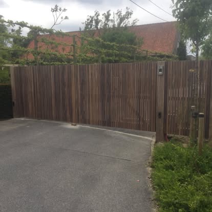 SONY DSCStrak aluminium poortje met paskader voor een nette en duurzame doorgang.Strakke aluminium dubbele draaipoort voor een veilige en stijlvolle afsluiting.Dubbel opendraaiende padouk poort met kruishout motief, geplaatst in Werken.Draaipoort in afrormosia met automatische bediening voor extra comfort en veiligheid.Stijlvolle tuinpoort in afrormosia hout, geplaatst in Handzame.Schuifpoort met verticale padouk bekleding, geplaatst in Handzame.Moderne tuinpoort in padouk hout, geplaatst in Staden.Padouk schuifpoort met zuilen en geïntegreerde brievenbus, geplaatst in Torhout.Landelijke weideafsluiting met houten poort in Engelse stijl, perfect passend bij een rustieke omgeving.